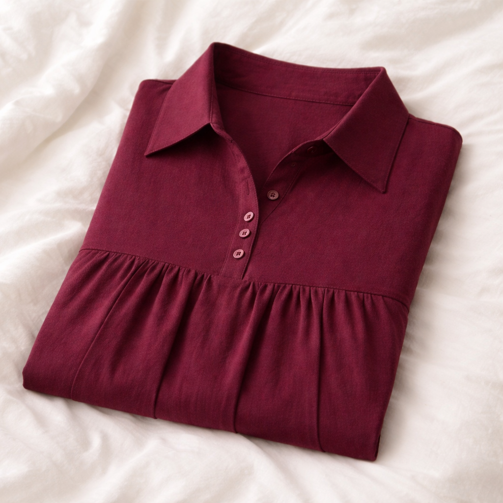 The rich wine shade adds a refined touch, making it suitable for both casual outings and relaxed workwear. Paired with matching straight pants, this set ensures comfort, ease of movement, and a clean, polished appearance throughout the day.